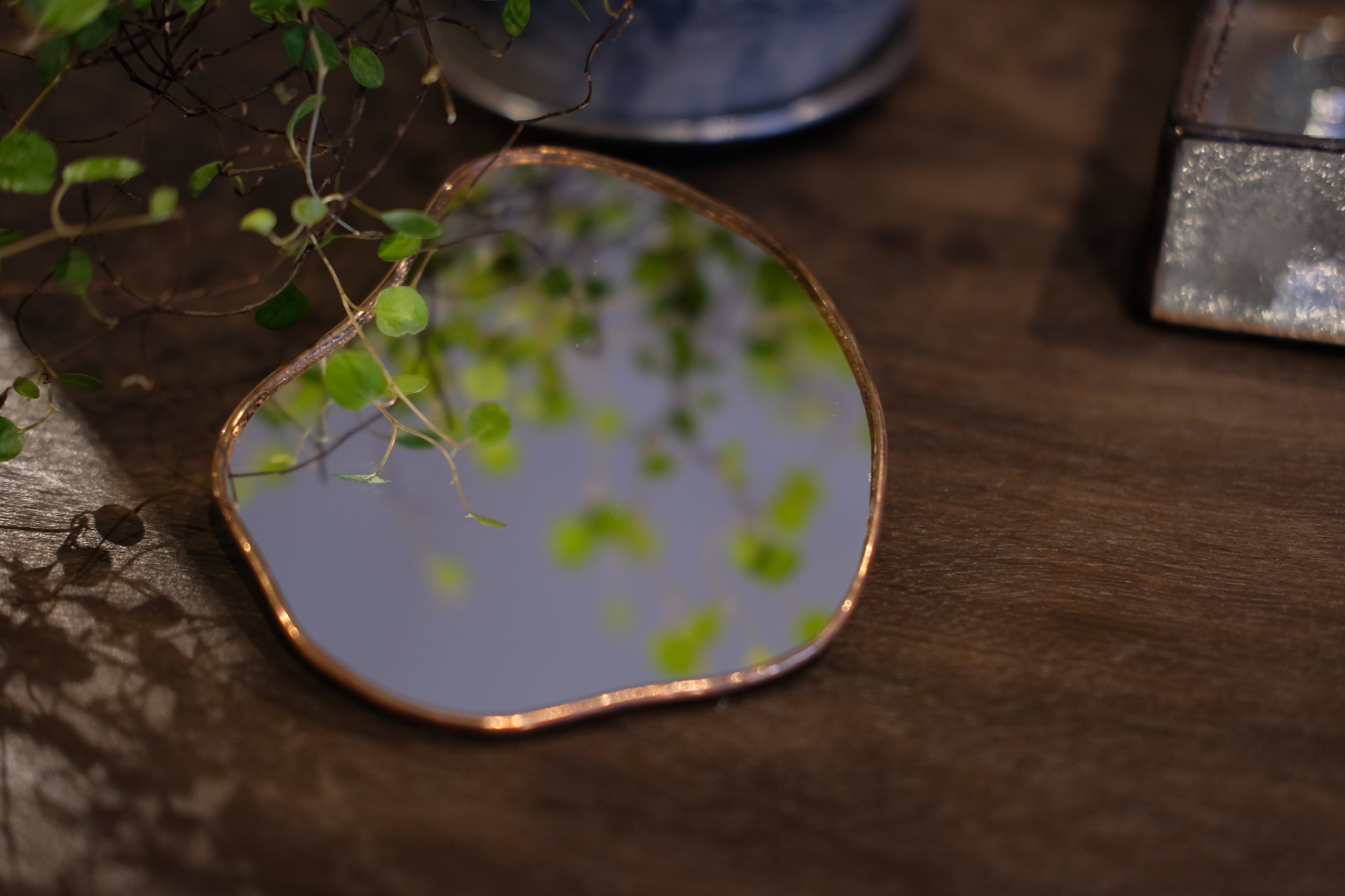 当初、催事用の小道具として作られたこちらの鏡は、長い間試行錯誤を繰り返し、商品化された作品です。