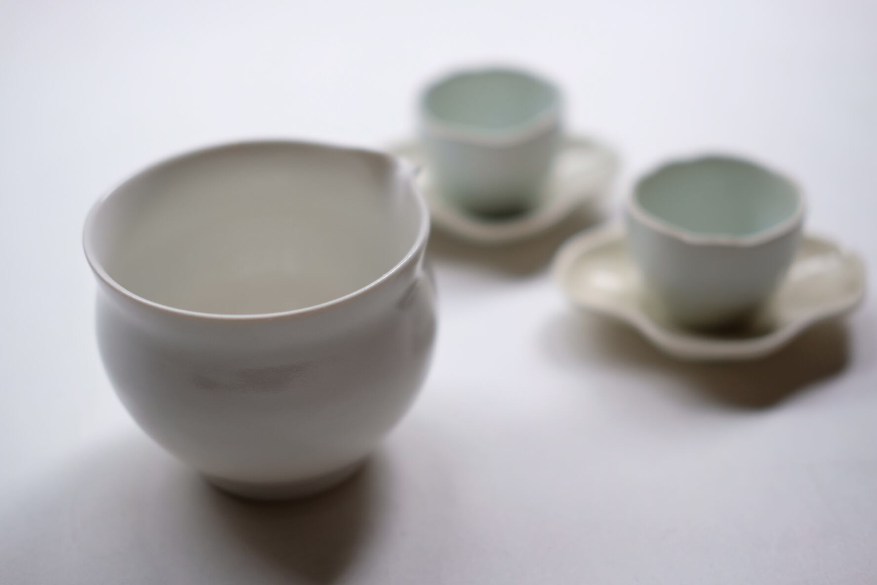自然界にあるフォルムやライン、小さなもの、規則的なリズムがあるようなものからインスピレーションを得て作陶しています。
