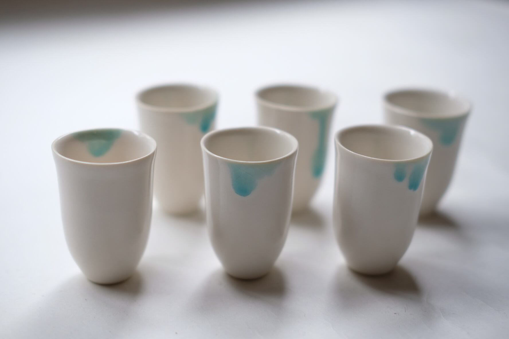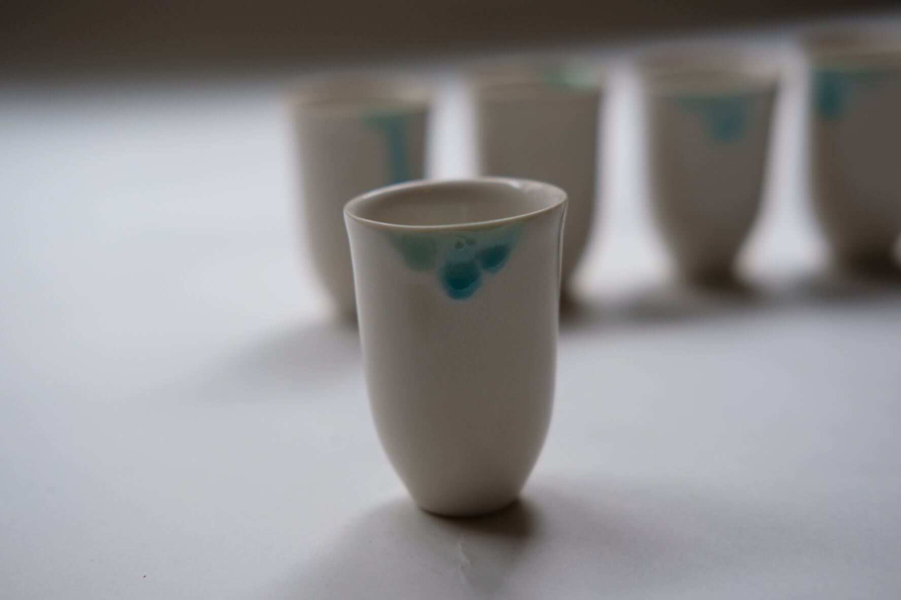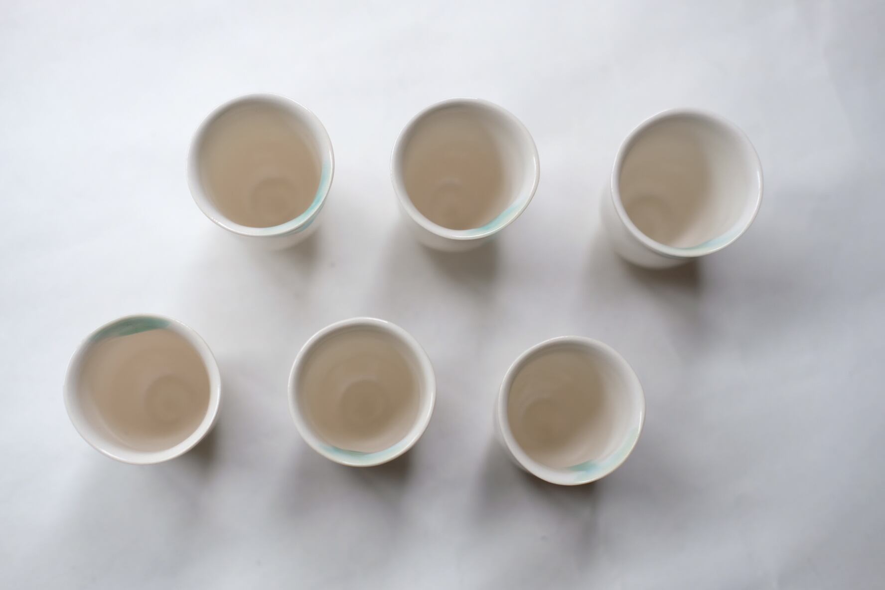 静かな冬の海のかけらのような、ひとつひとつ異なる表情の器がそろいました。