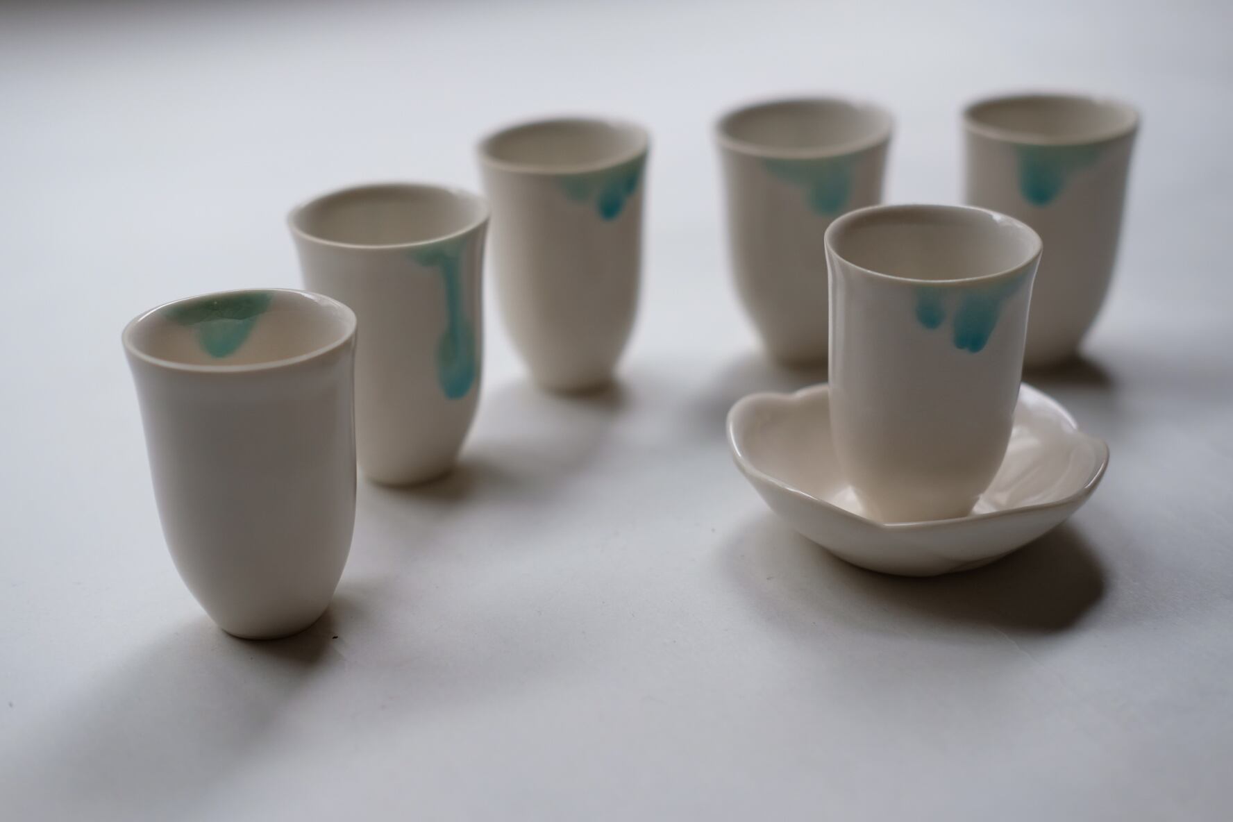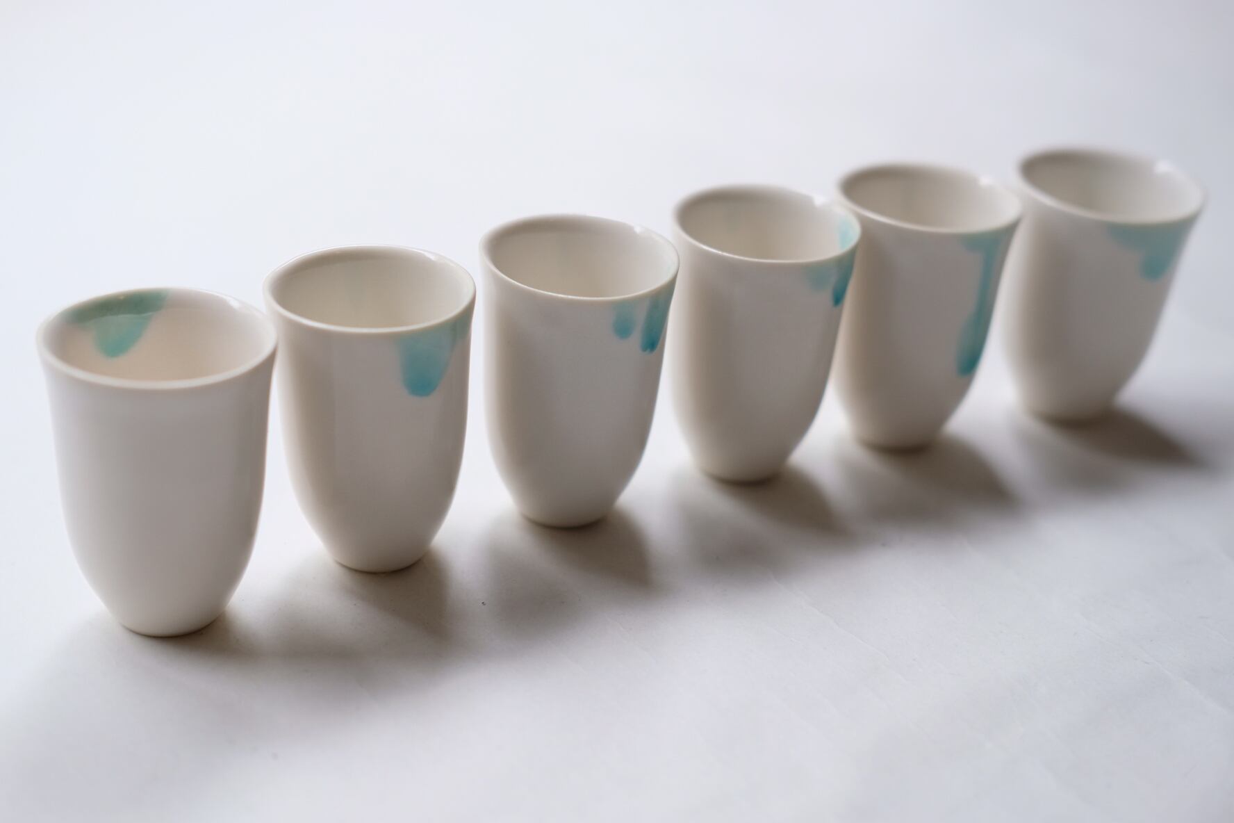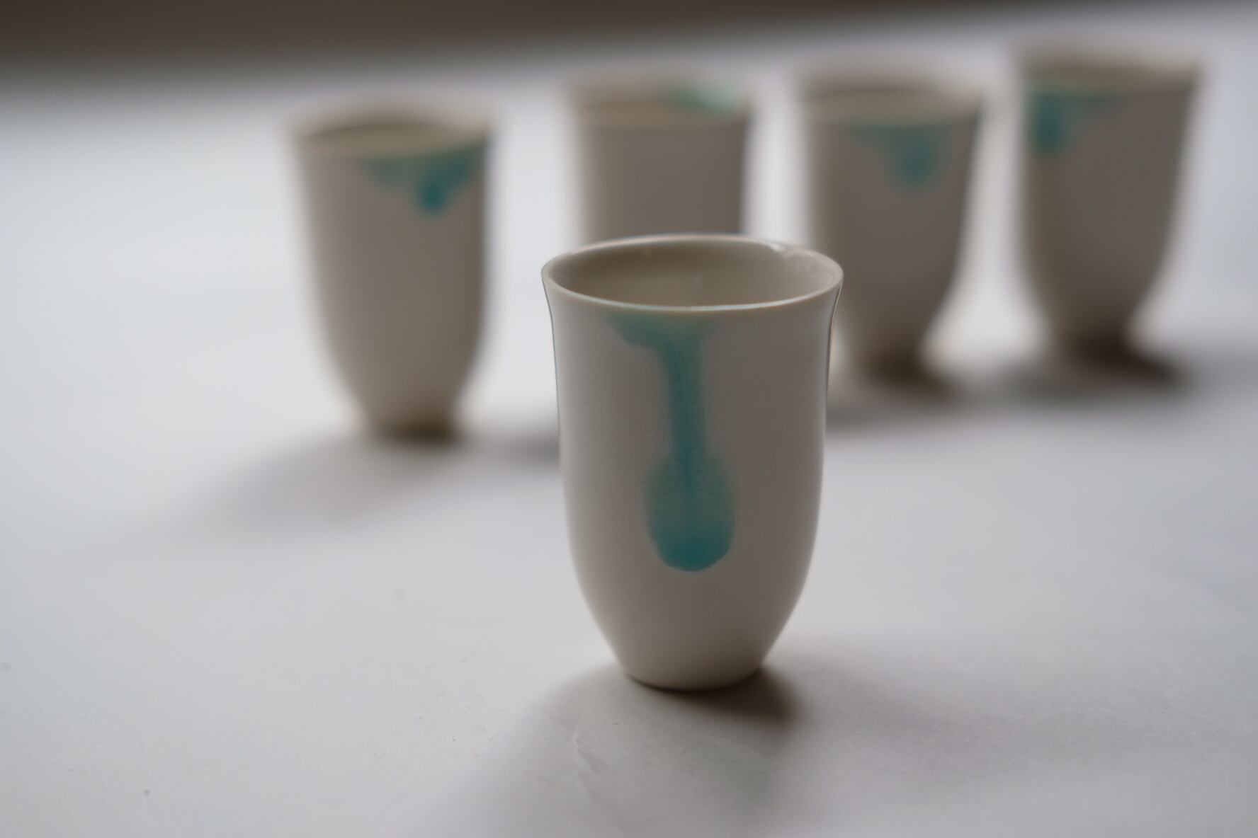 静かな冬の海のかけらのような、ひとつひとつ異なる表情の器がそろいました。