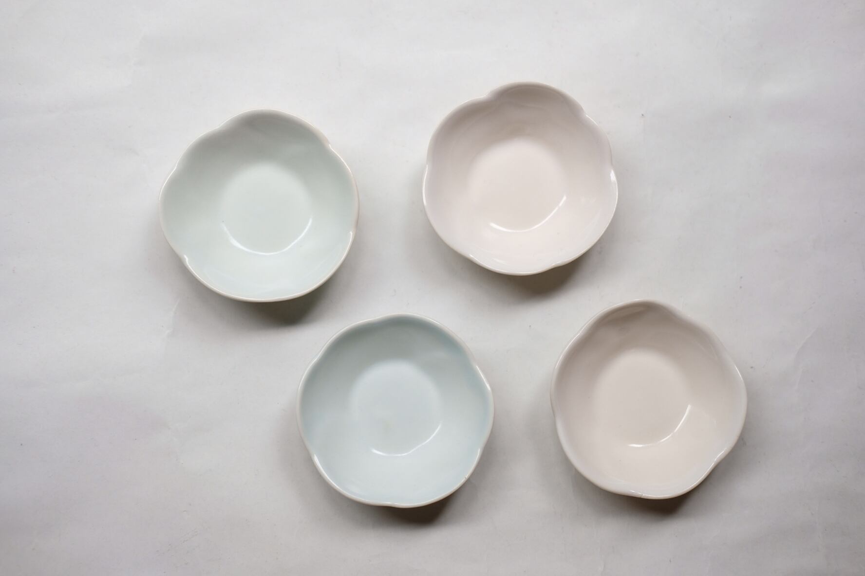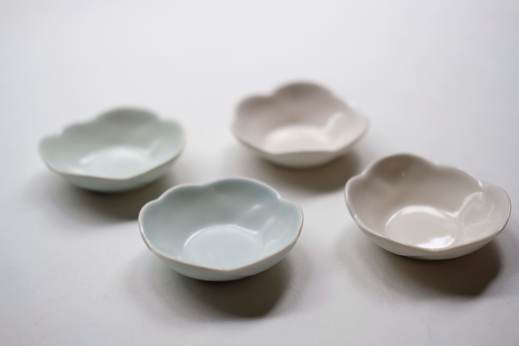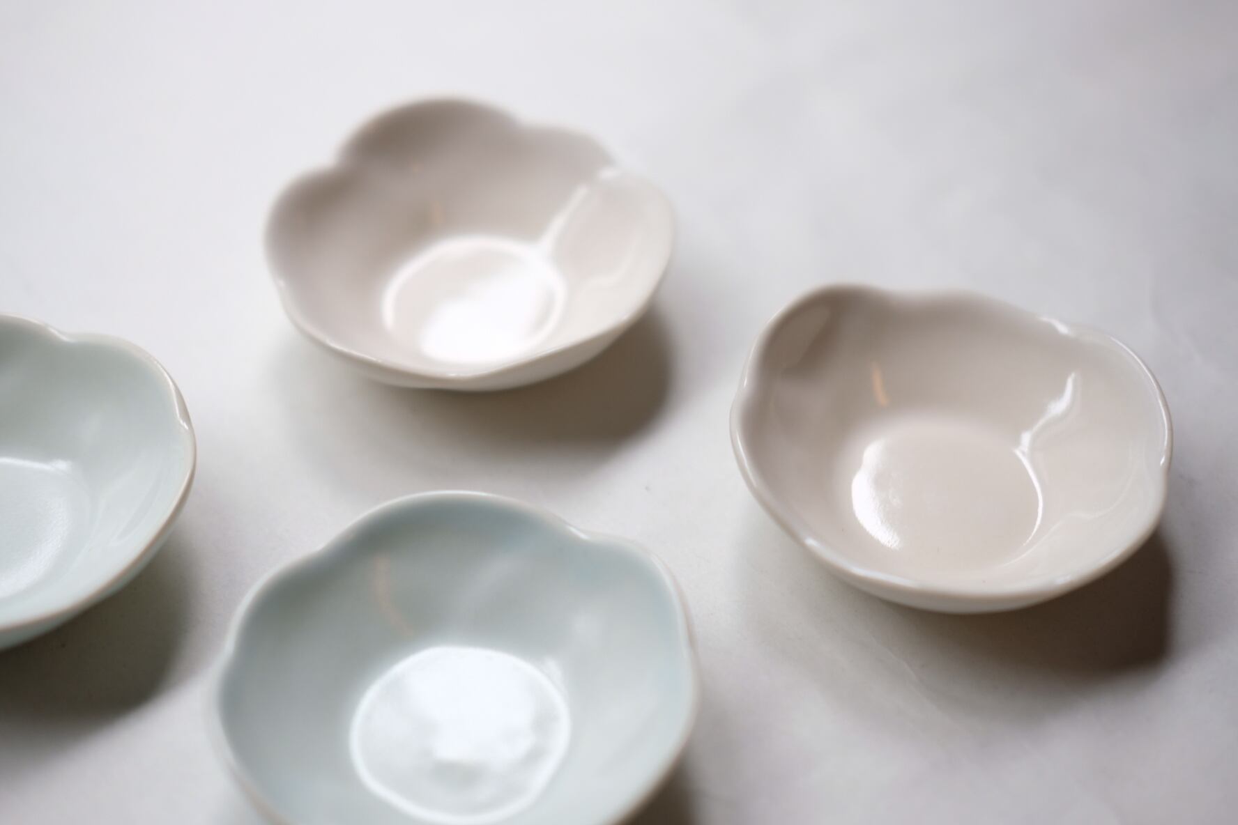 静かな冬の海のかけらのような、ひとつひとつ異なる表情の器がそろいました。