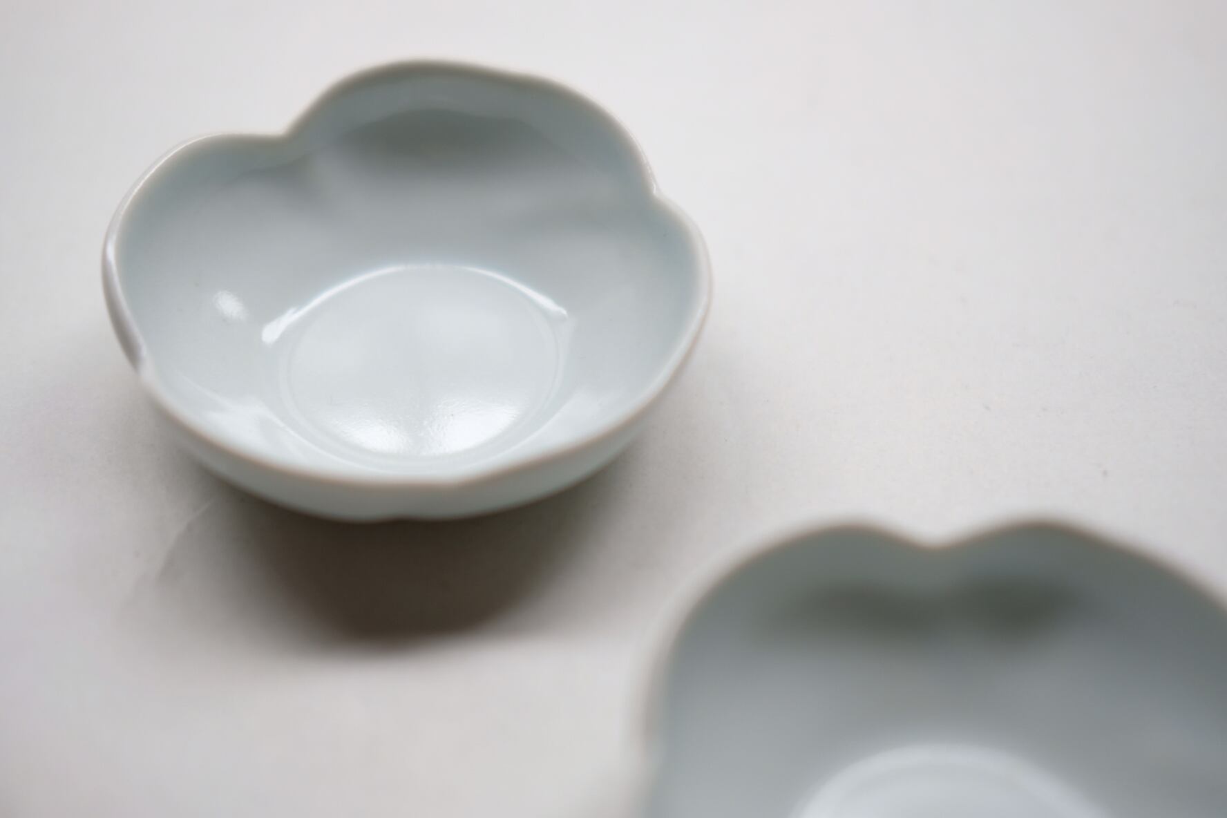 静かな冬の海のかけらのような、ひとつひとつ異なる表情の器がそろいました。