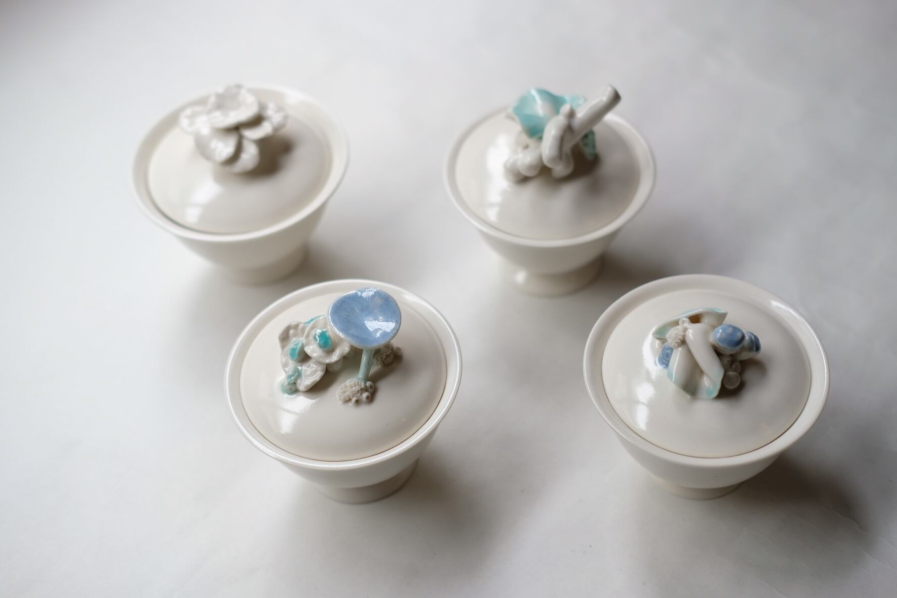 自然界にあるフォルムやライン、小さなもの、規則的なリズムがあるようなものからインスピレーションを得て作陶しています。