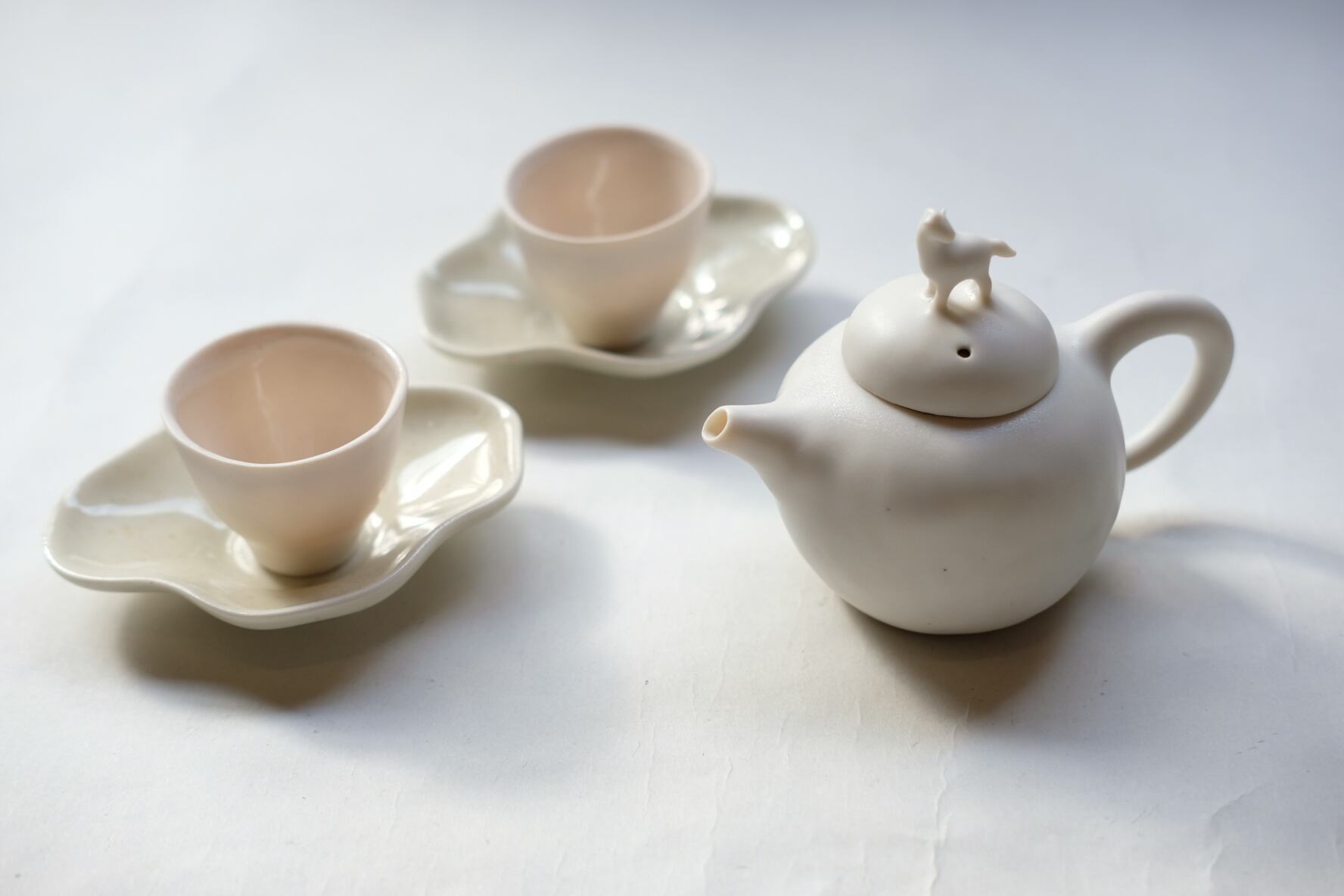 台湾の土と釉薬を使い、お茶を淹れるひとときに静かな物語が灯るような、温もりある茶器を制作しています。造形に対するストイックなまでの探求心から生まれる作品は、洗練された美意識と、包み込むような柔らかな佇まいを併せ持ち、使い手の日常に穏やかな彩りを添えます。