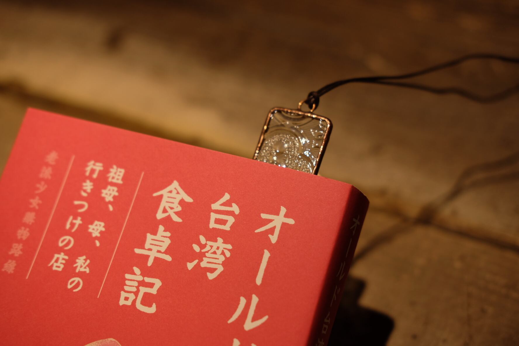 台湾の古民家で使用されていた古材ガラスを使ったブックマーク。